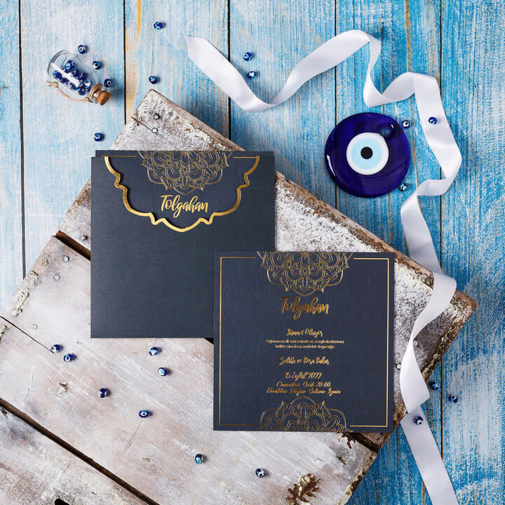 • Davetiye kutulu olarak tasarlanmış olup zarf ve aksesuarları içerisinde bulunmaktadır.