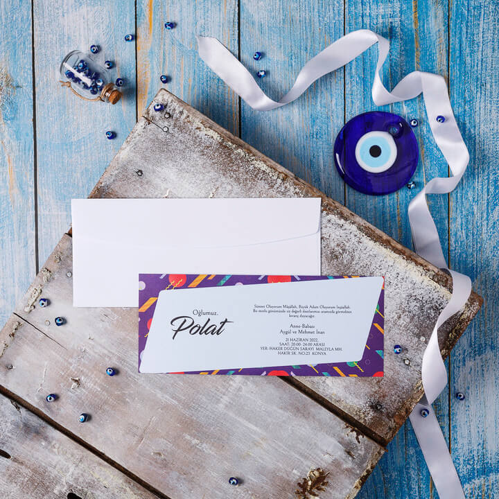 • Davetiyenin ebat bilgilerini açıklamaların altında yer alan Davetiye Ölçüleri bölümünde bulabilirsiniz.