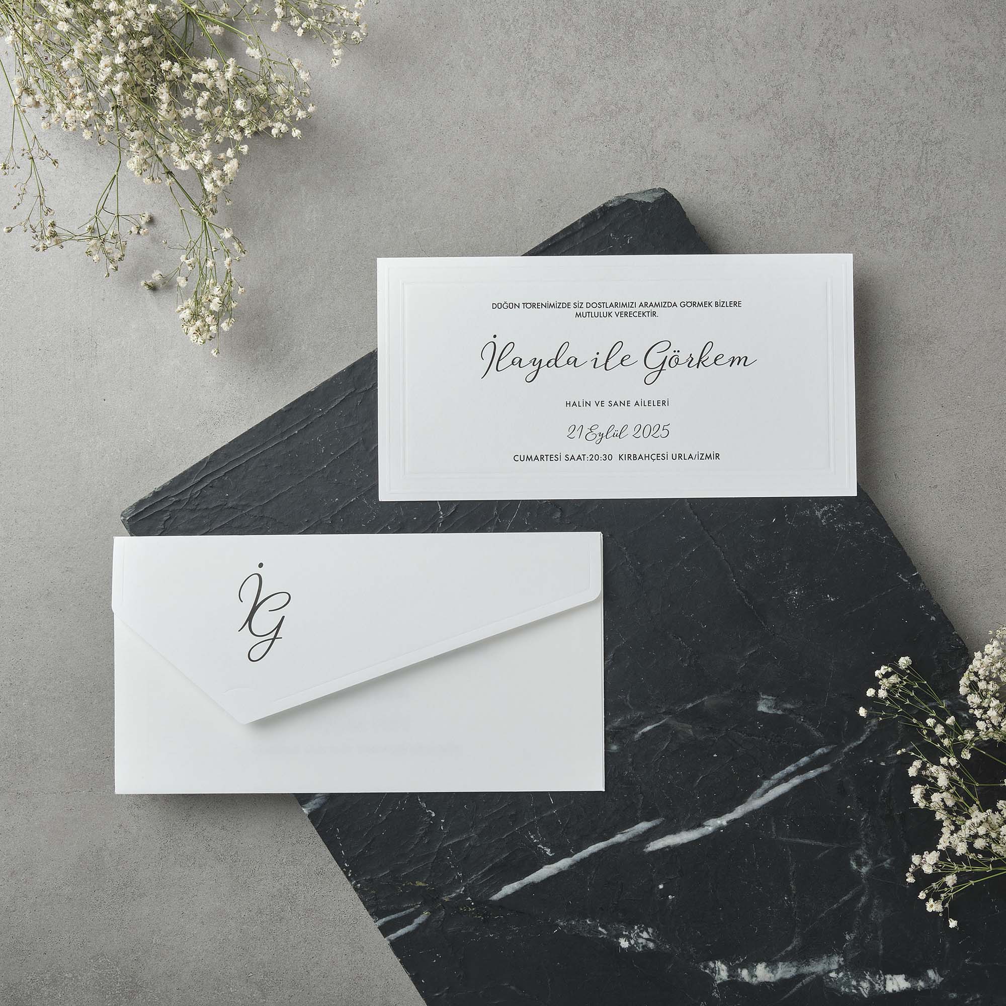 - Davetiye kutulu olarak tasarlanmış olup zarf ve aksesuarları içerisinde bulunmaktadır.