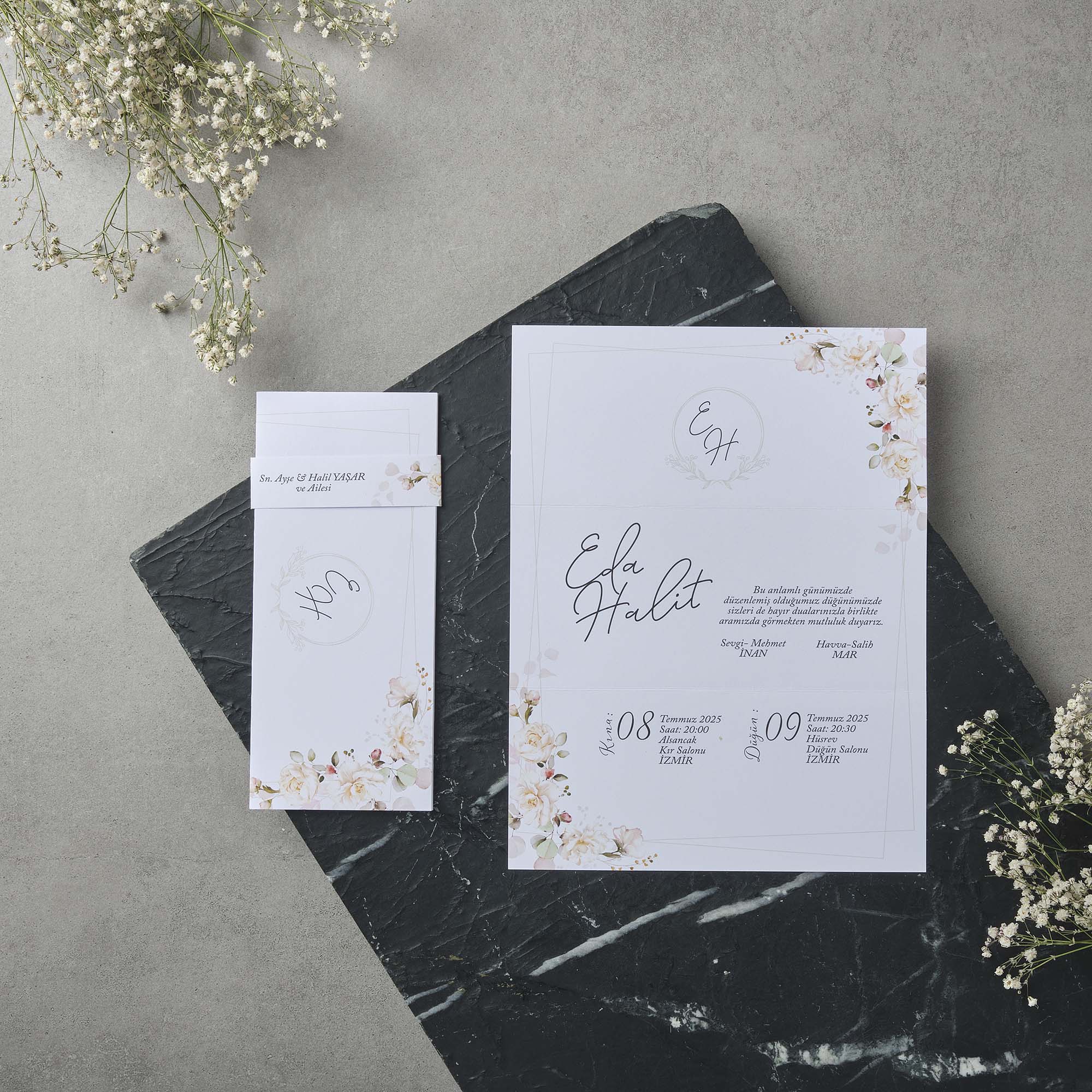 - Davetiye kutulu olarak tasarlanmış olup zarf ve aksesuarları içerisinde bulunmaktadır.