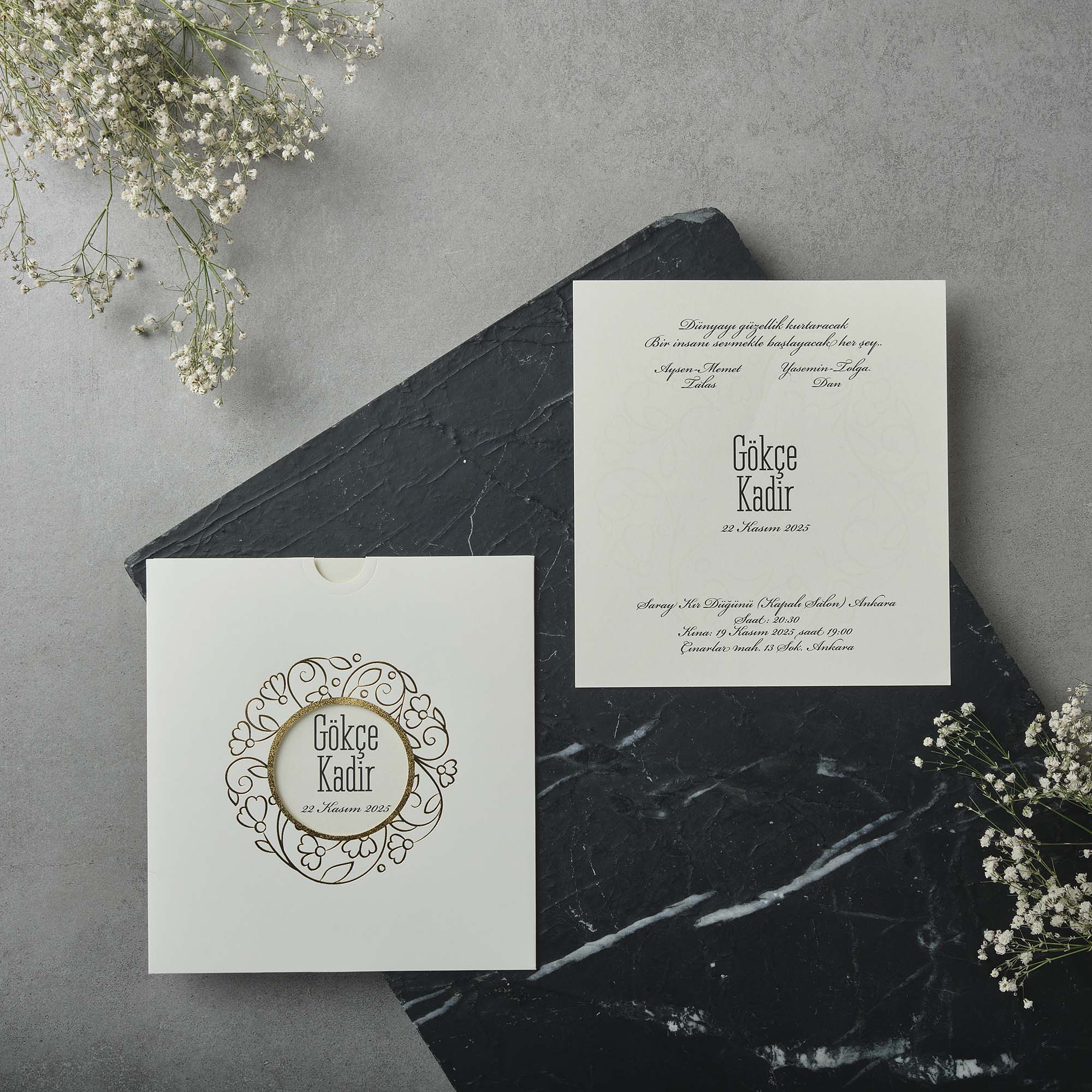 • Davetiye kutulu olarak tasarlanmış olup zarf ve aksesuarları içerisinde bulunmaktadır.