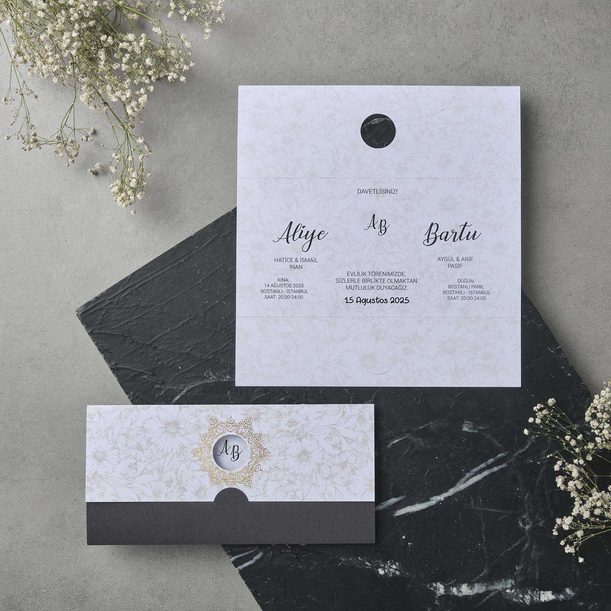 - Davetiye kutulu olarak tasarlanmış olup zarf ve aksesuarları içerisinde bulunmaktadır.