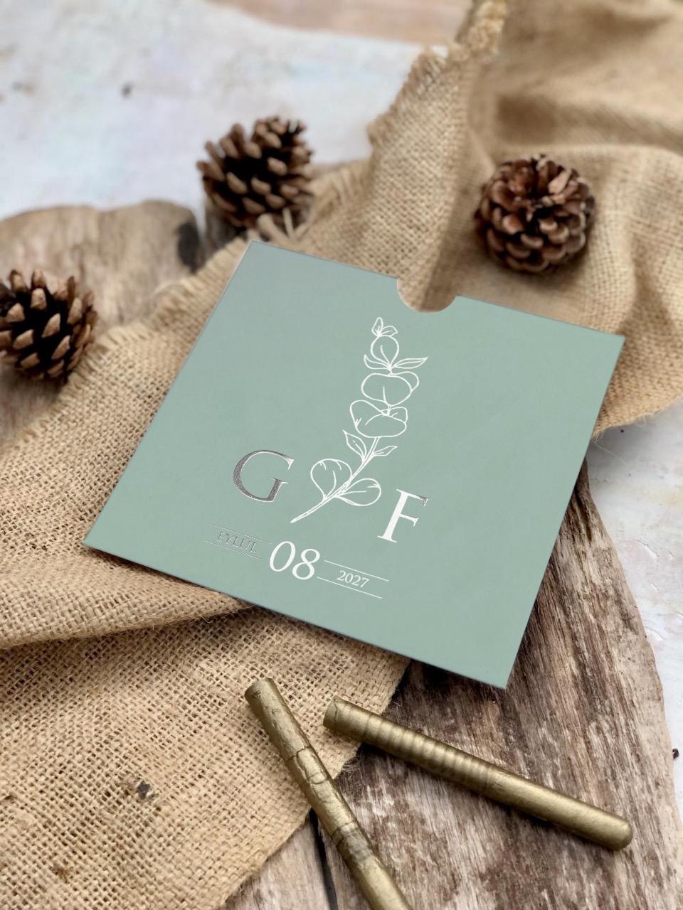 * Dış Zarf: 230 gr Amerikan Bristol – 140x140 mm kare zarf