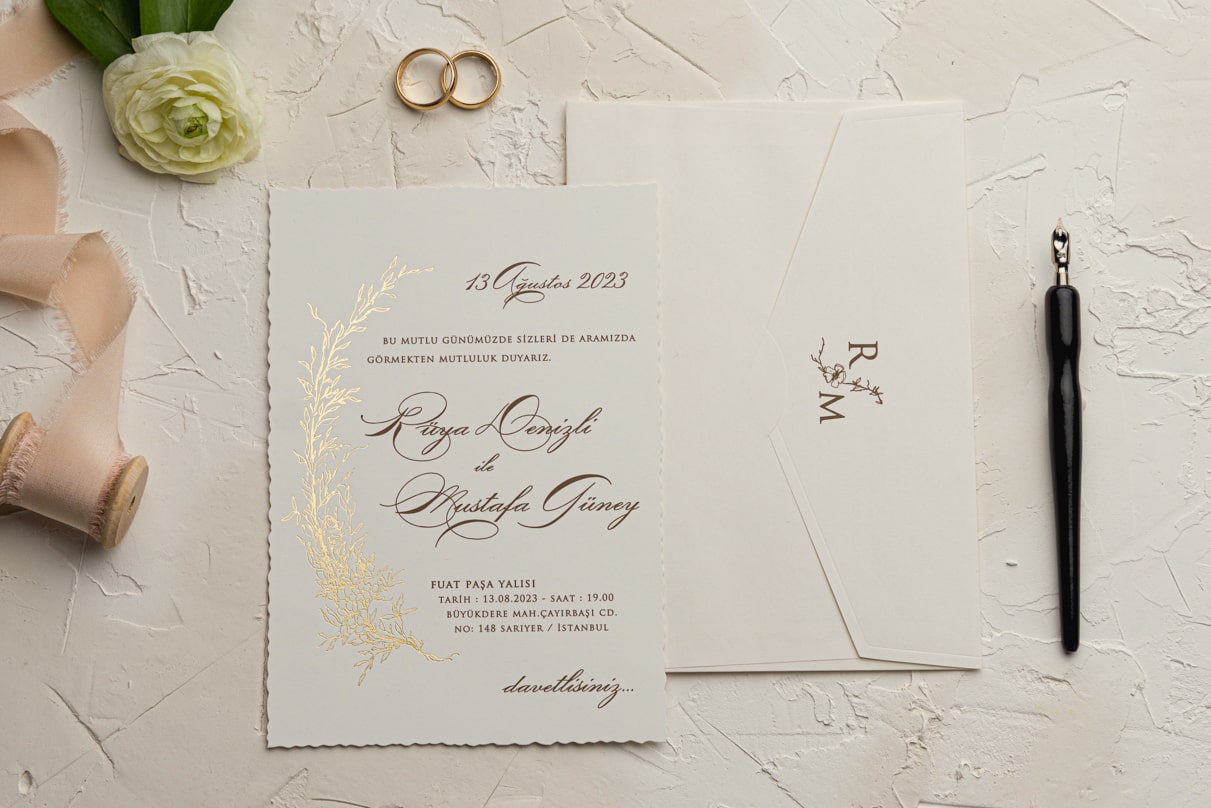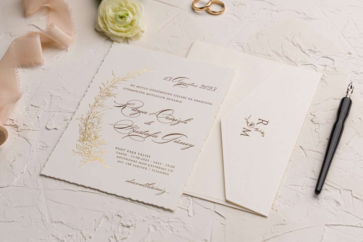 Davetiye Ofset, Varak Yaldız ve Serigraf Boya baskı tekniğine uygun olup, baskı fiyatı ayrı olarak ücretlendirilir.