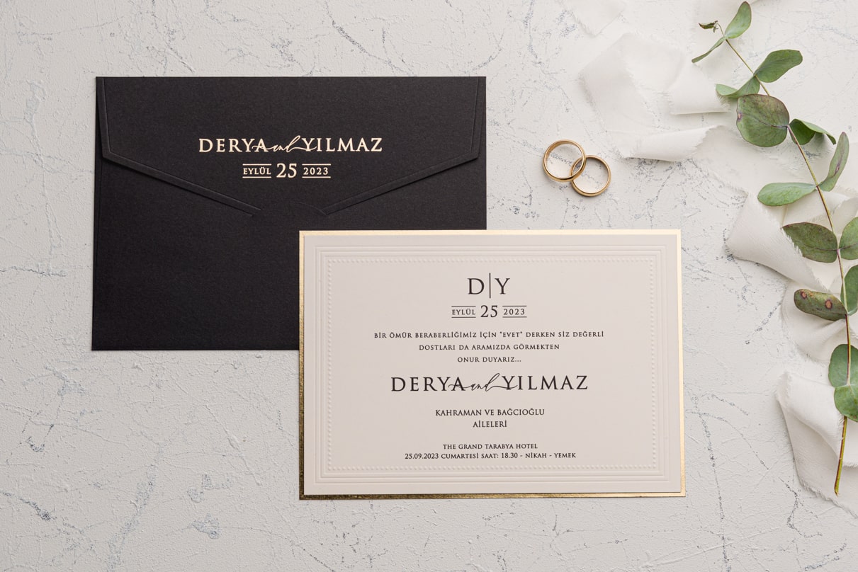 Davetiye Ofset, Varak Yaldız ve Serigraf Boya baskı tekniğine uygun olup, baskı fiyatı ayrı olarak ücretlendirilir.