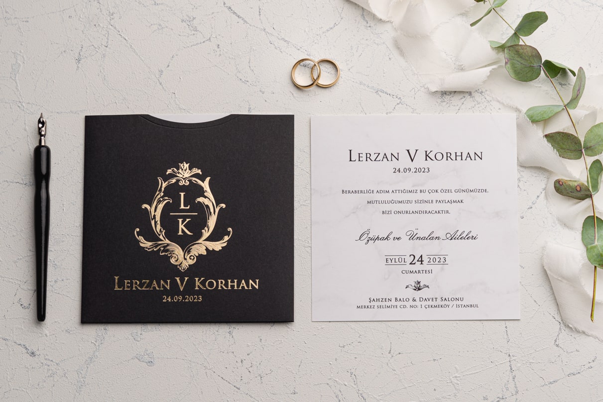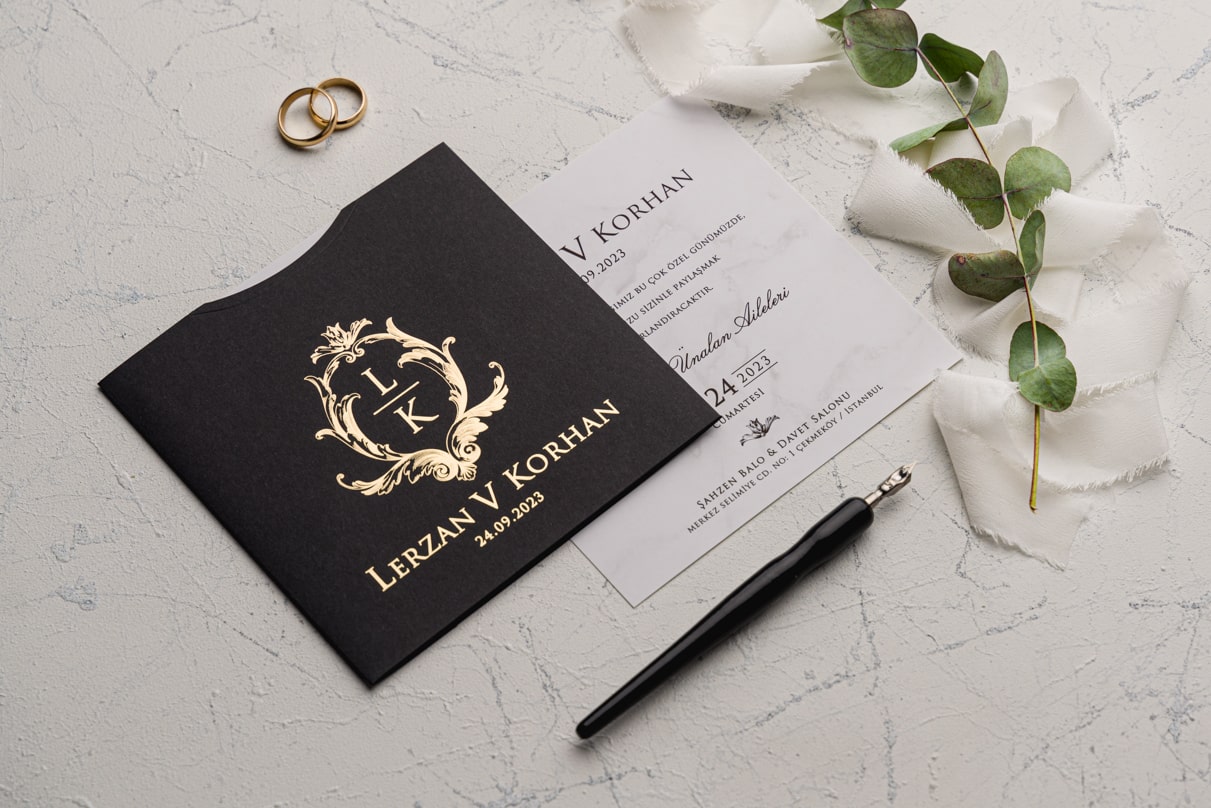 Davetiye Ofset, Varak Yaldız ve Serigraf Boya baskı tekniğine uygun olup, baskı fiyatı ayrı olarak ücretlendirilir.