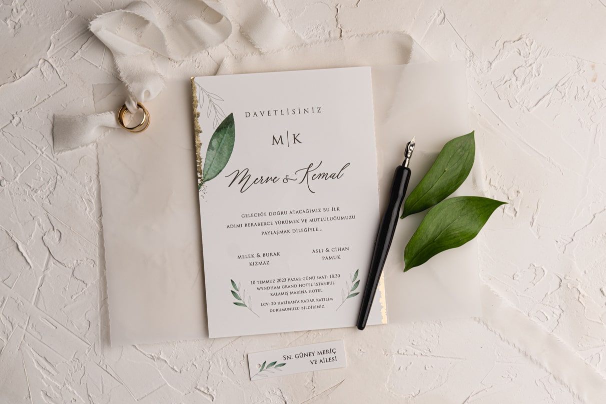 Davetiye Ofset, Varak Yaldız ve Serigraf Boya baskı tekniğine uygun olup, baskı fiyatı ayrı olarak ücretlendirilir.