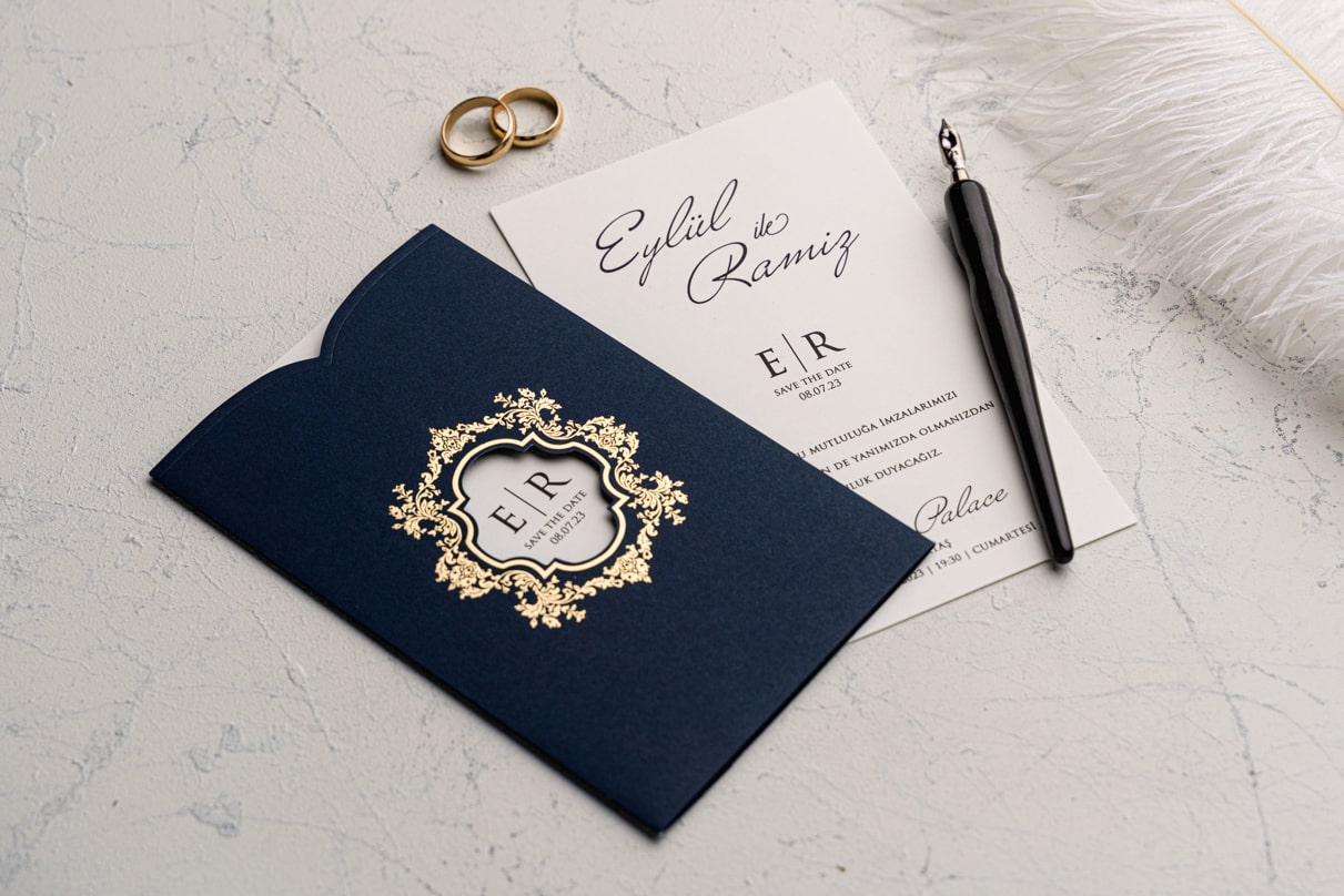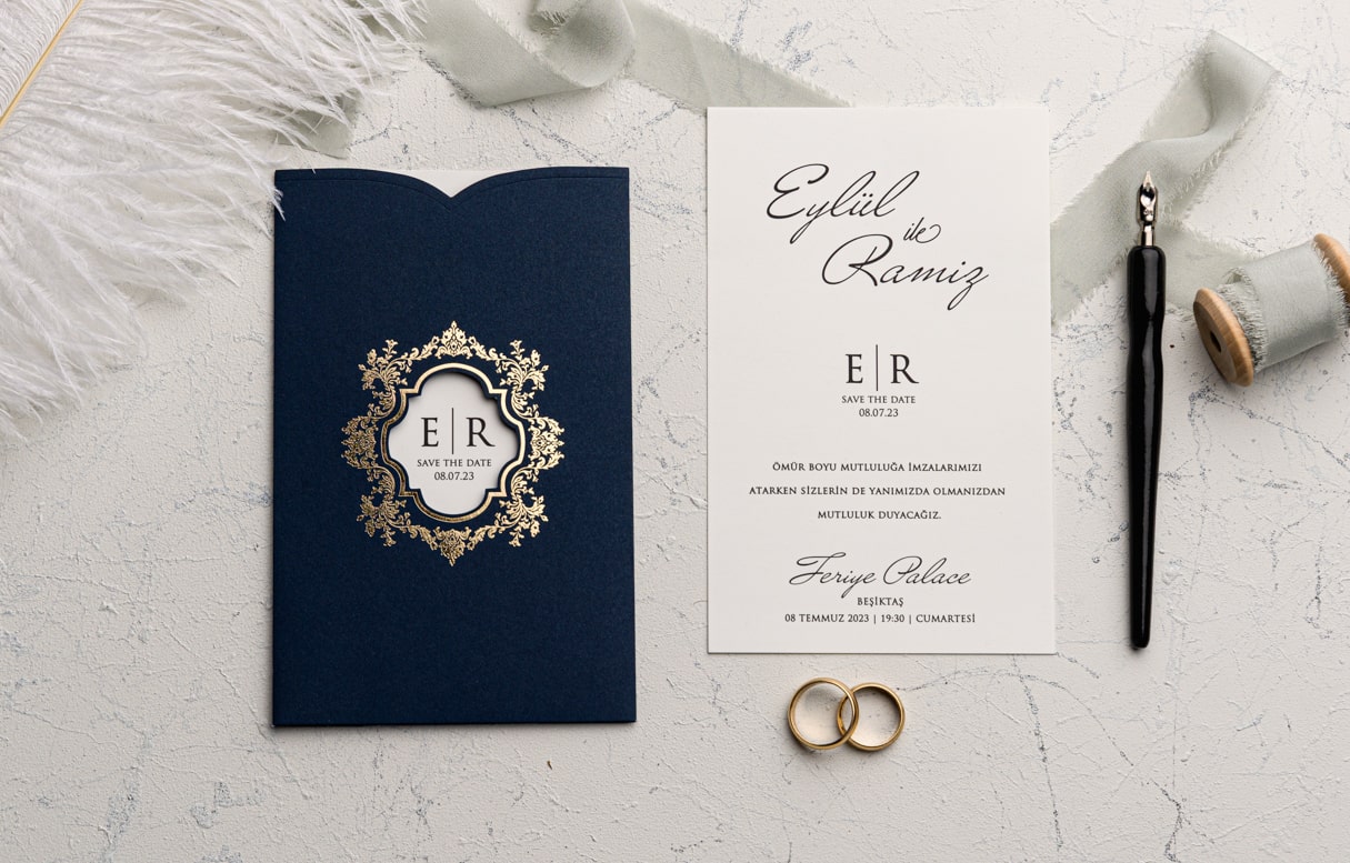 Davetiye Ofset, Varak Yaldız ve Serigraf Boya baskı tekniğine uygun olup, baskı fiyatı ayrı olarak ücretlendirilir.