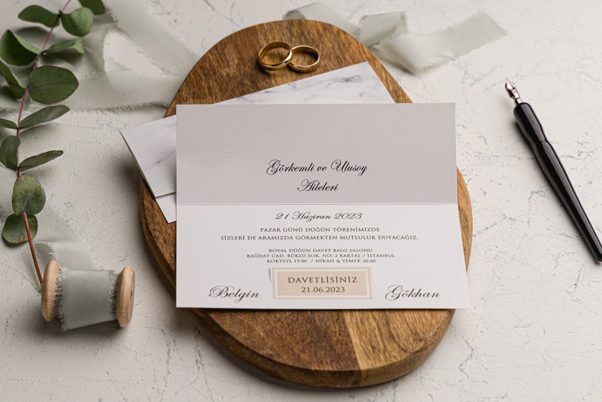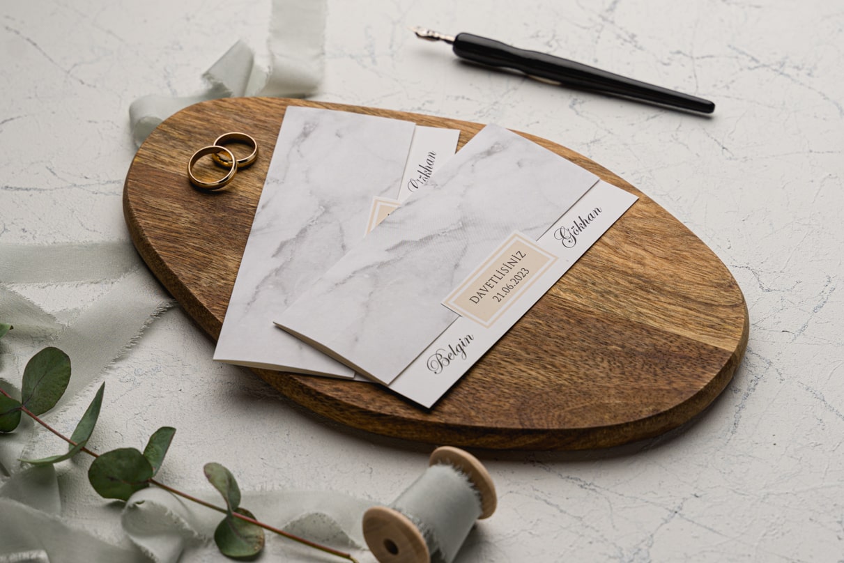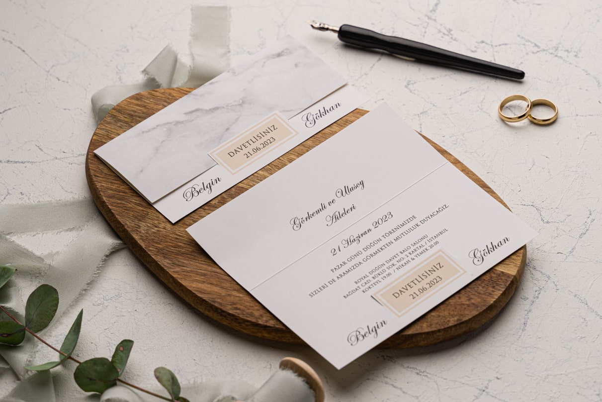 Davetiye Ofset, Varak Yaldız ve Serigraf Boya baskı tekniğine uygun olup, baskı fiyatı ayrı olarak ücretlendirilir.