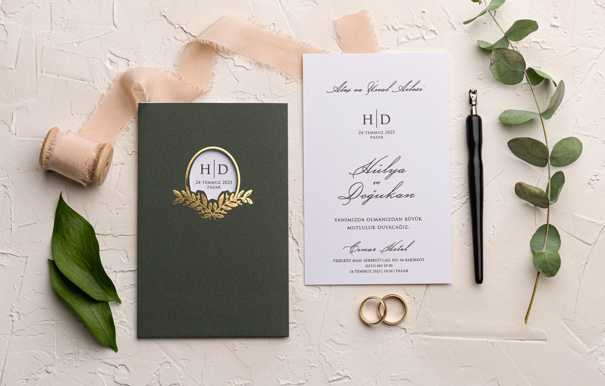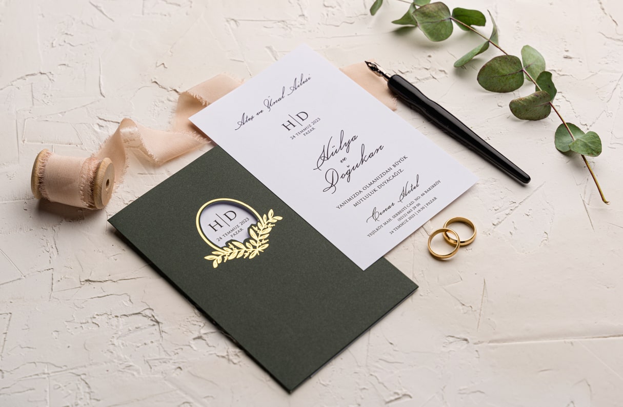 Davetiye Ofset, Varak Yaldız ve Serigraf Boya baskı tekniğine uygun olup, baskı fiyatı ayrı olarak ücretlendirilir.