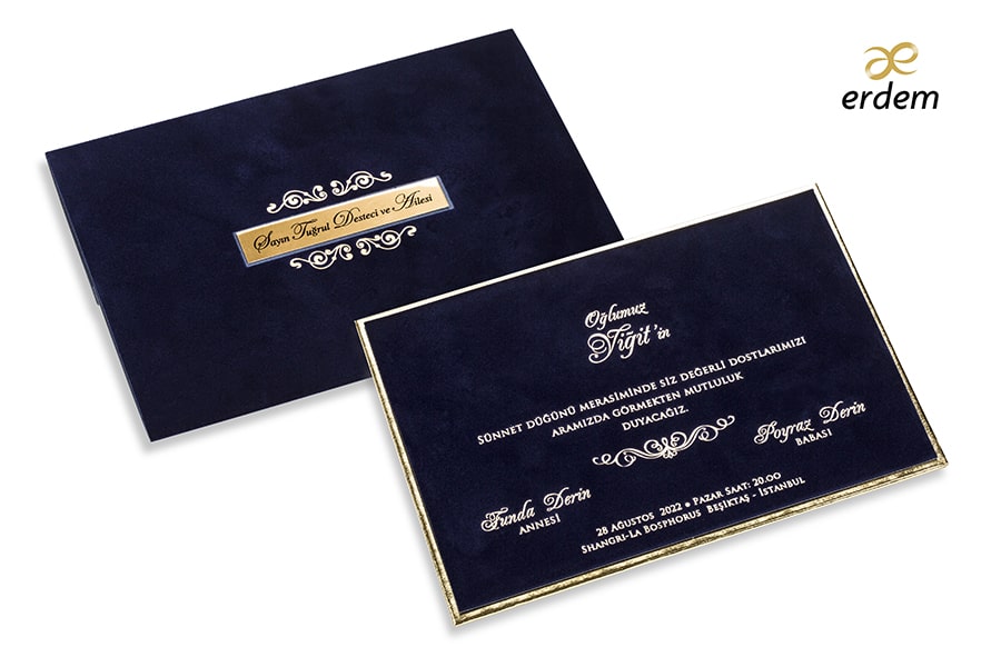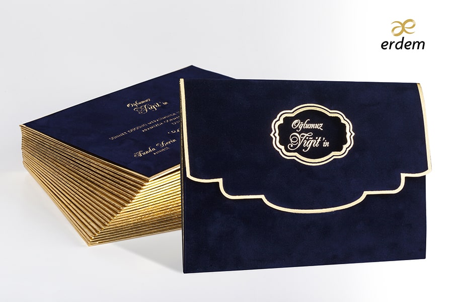 Özel Kadife Baskılı Davetiye, Varak Yaldız baskı tekniğine uygun olup, baskı fiyatı ayrı olarak ücretlendirilir.